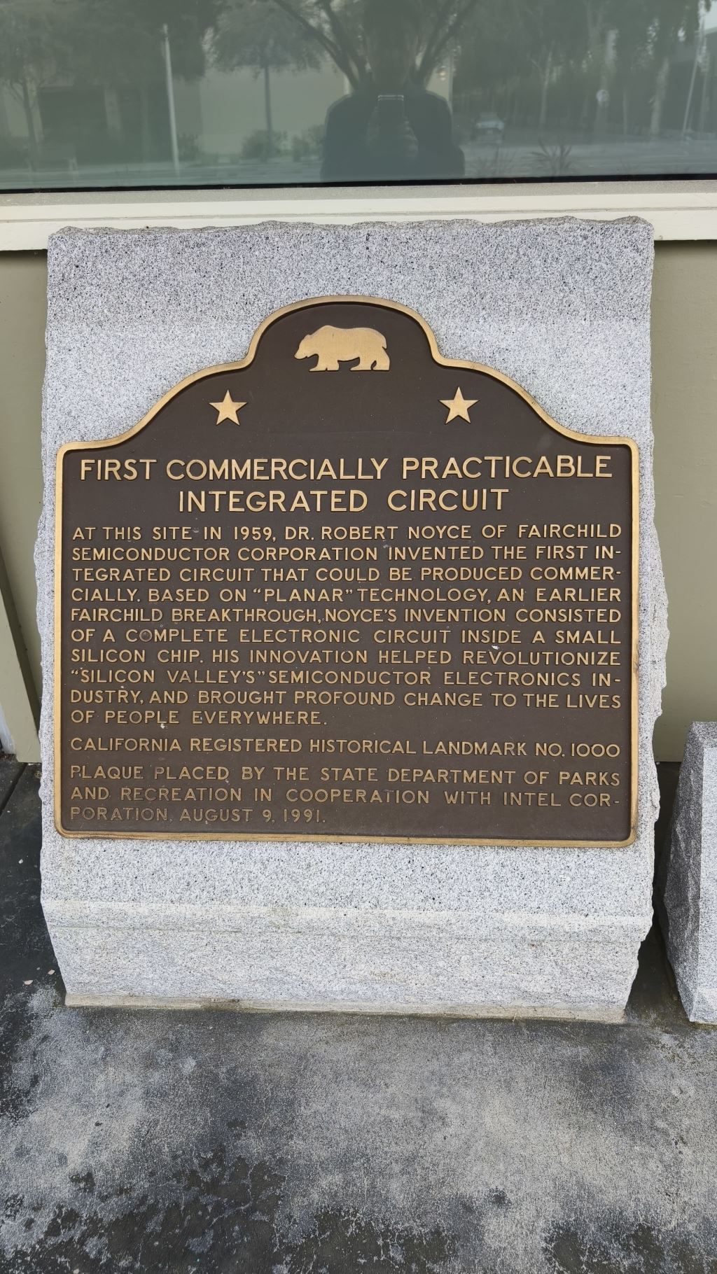 ▲ 快捷半導體原址附近的碑,上面說明了第一顆商業化的積體電路在此處發明、製造。(張瑞棋提供)