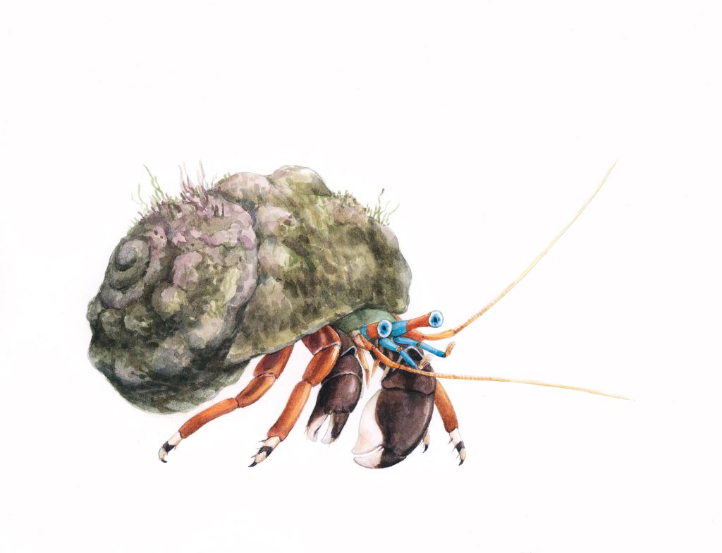 很多人會問我一張圖要畫多久,事實上除了作畫的時間,動筆前蒐集資料、理解背景知識也費時良久,這才是科學繪圖難以省略的步驟。既使是畫我熟悉的常見動物,例如潮間帶的光掌硬殼寄居蟹(