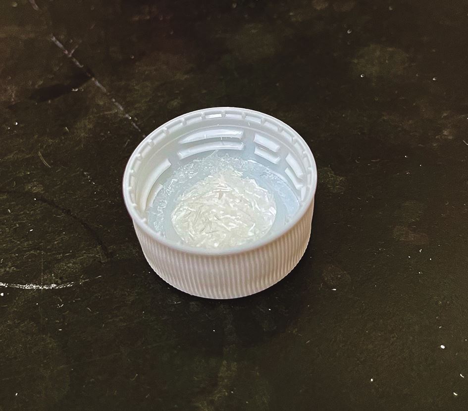 8. 瓶蓋中間的小槽裝滿味精(約 1 克),倒入寶特瓶。