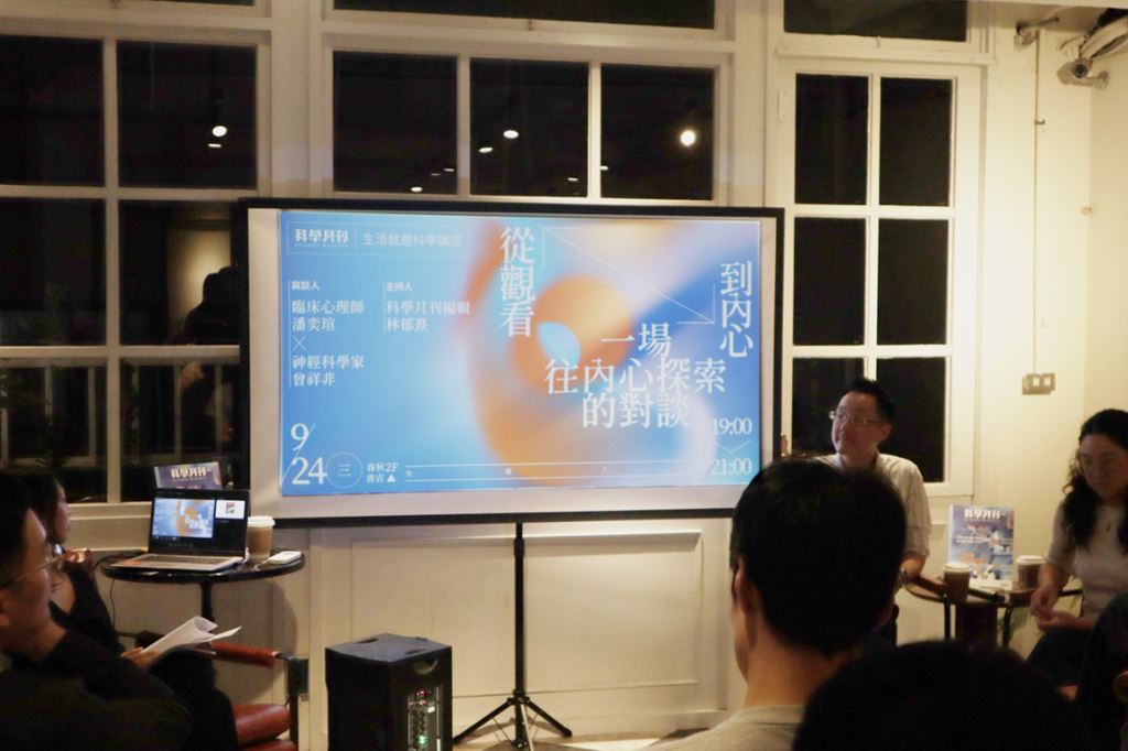 生活就是科學講座於今(2025)年9月24日晚上舉行第三彈——「不停觀看,一場往內心探索的對談」,邀請了8月號「不停觀看」作者——臨床心理師潘奕瑄與認知神經科學家曾祥非來與民眾對談——當今不停觀看的我們,是如何被注意力與心理健康影響著?