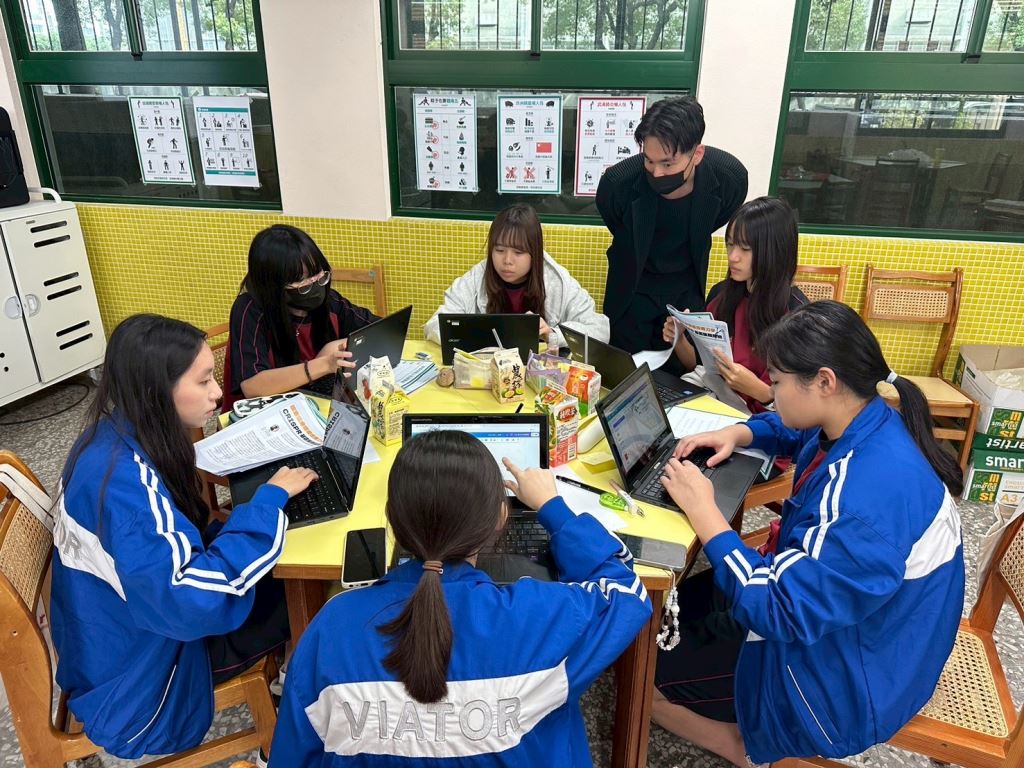學生透過課堂所學,製作懶人包並上臺展示。 (趙軒翎拍攝)