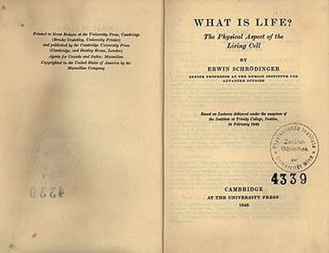 .在《生命是什麼?》中,薛丁格從物理學角度提出「非週期性晶體」概念,嘗試解釋生命如何維持高度有序,此書直接啟發後來對基因與 DNA 結構的研究,成為分子生物學誕生的重要思想源頭。