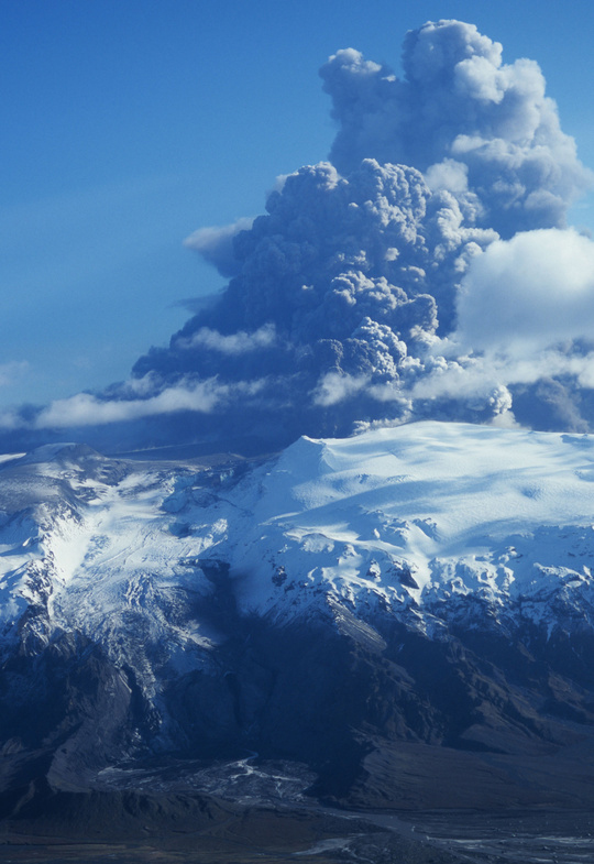 圖一:2010 年4月14日冰島艾雅法拉火山爆發三天後的情形,