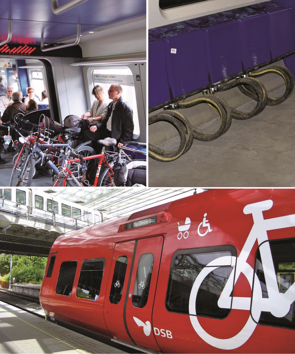 哥本哈根推行自行車網絡,可在電車上看見專屬車廂和車架。